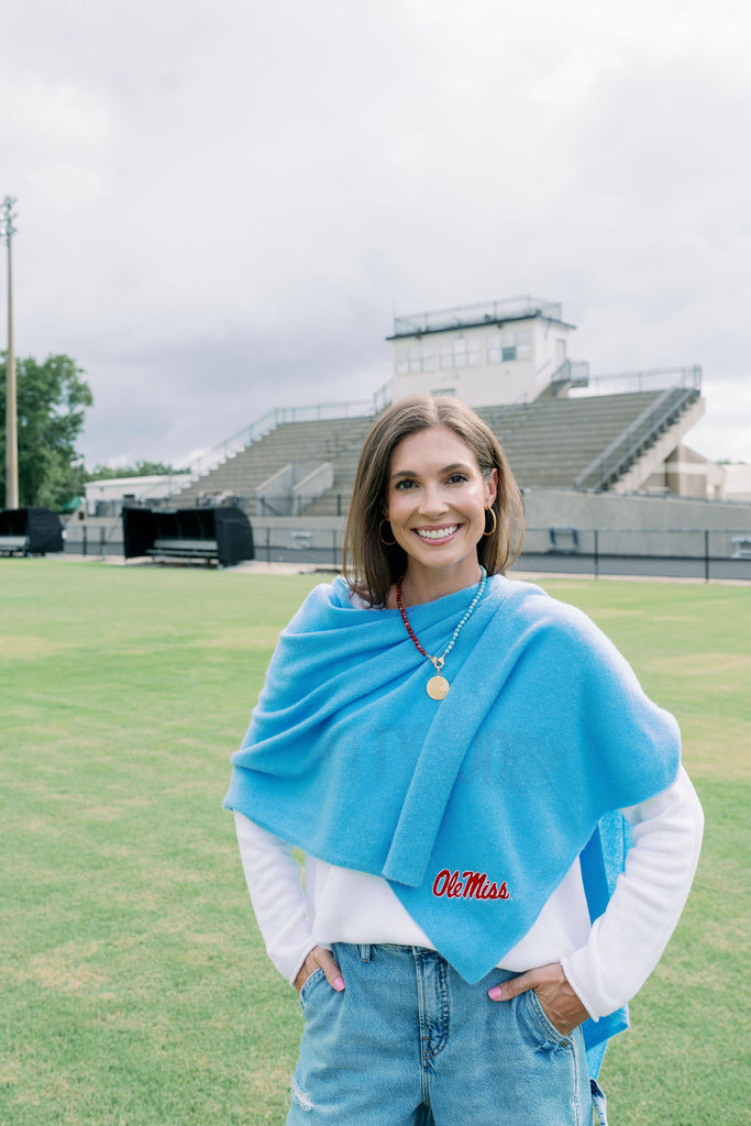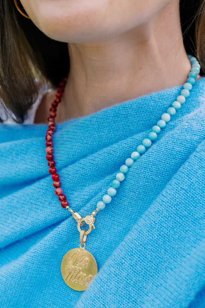This red & powder blue gemstone necklace is the perfect accessory for all Ole Miss fans.