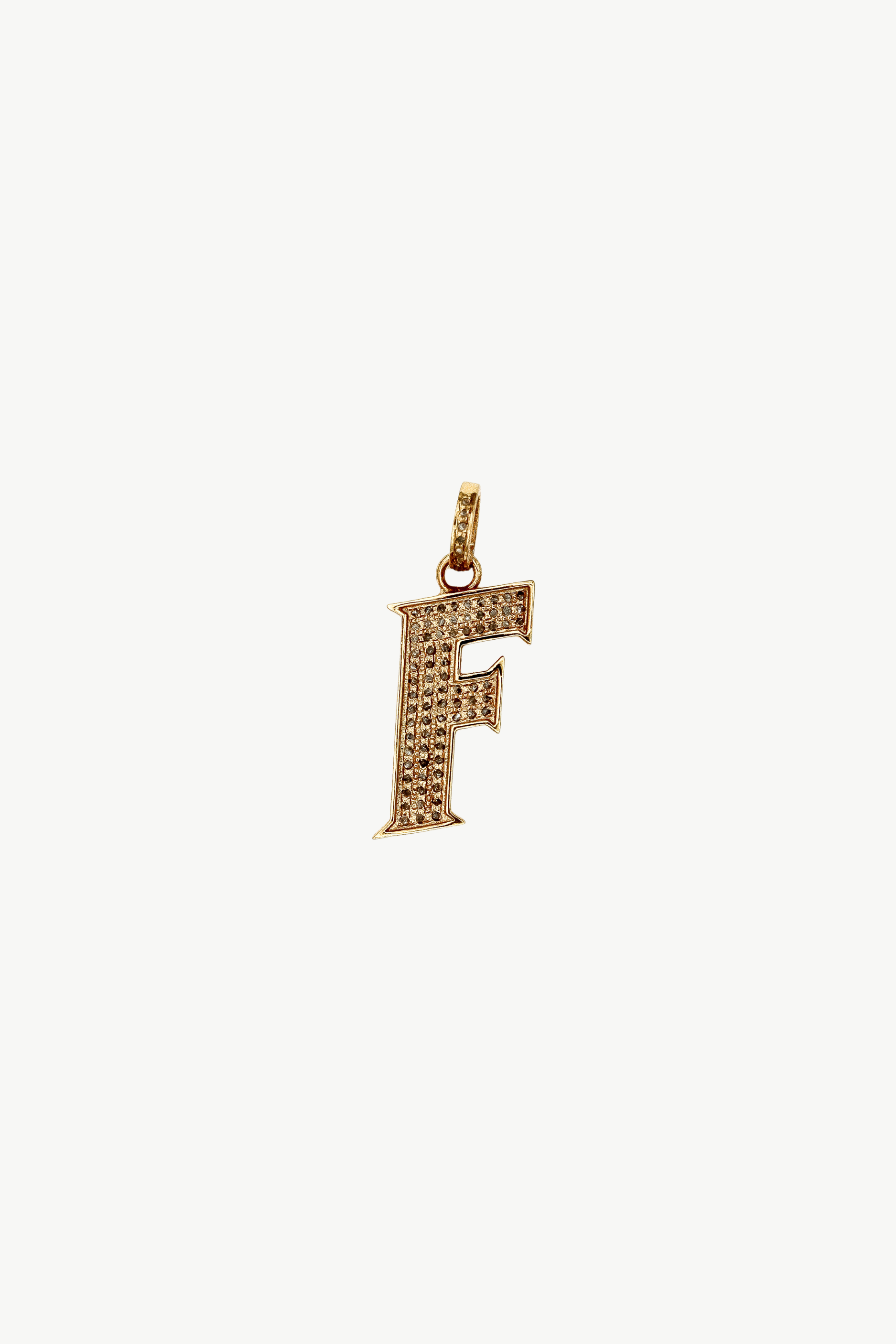Officially licensed by FOSTER, this 35mm shiny yellow gold-plated Florida "F" pendant is edged in pave diamonds for the University of Florida. This pendant is finished with a pave diamond bail and thoughtfully designed using a thick layer of gold and a protective coating, ensuring its beauty and durability for longer wear. Go Gators!