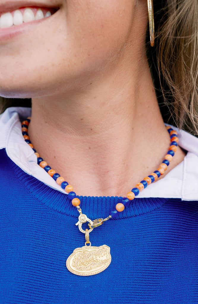This orange & cobalt blue gemstone necklace is the perfect accessory for all University of Florida fans.