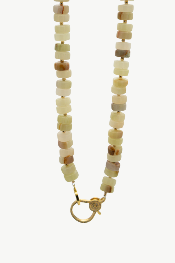 Meet the 18" Haven Necklace - BOLD 12mm wheel-shaped Afganistan jade (yellowish brown calcite) beads bring warm, sunlit color to this hand-beaded beauty, accented with delicate 3mm gold-filled spacer beads for the perfect touch of shine. The Haven is the kind of necklace that turns a simple outfit into a whole moment!