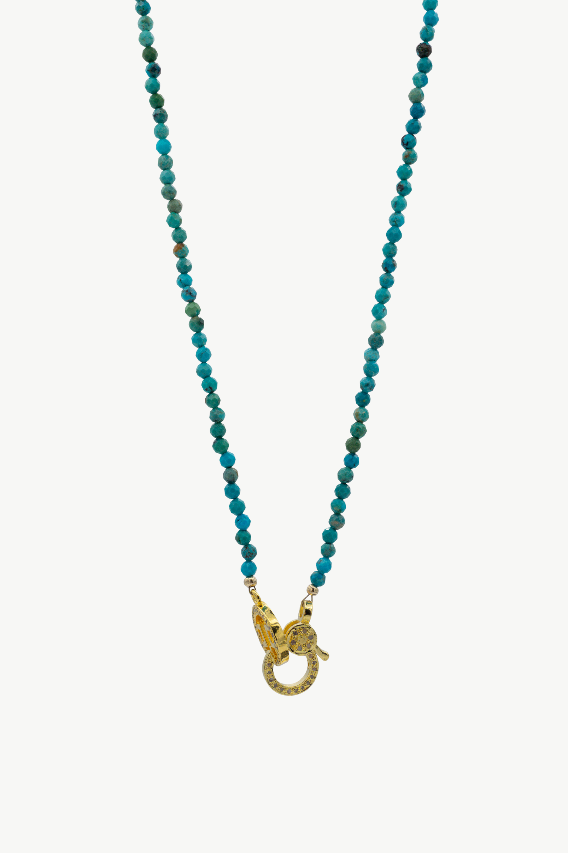 The 16" Posey necklace is the ultimate accessory for those who love to express their style with a splash of color! This charming faceted hubei turquoise gemstone necklace is designed for layering, making it the perfect addition to your jewelry collection. Its shorter length and delicate design allows you to mix and match with your favorite pieces, whether it's a bold statement necklace or a simple chain. The result? A stunning layered look that showcases your unique personality and flair! The Posey necklace is assembled using a pave diamond lobster clasp and our signature H ring with a luxuriously thick layer of gold and a protective coating, ensuring its beauty and durability for longer wear.
