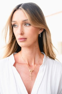 Este impactante colgante en forma de cruz de 35 mm x 24 mm (1,5") combina un diseño atemporal con un toque moderno. Elaborada en metal chapado en oro, la cruz luce delicados diamantes pavé que le aportan un toque de brillo, mientras que sus extremos puntiagudos le otorgan un aspecto audaz y único. Perfecta para destacar, esta pieza ofrece elegancia y un estilo contemporáneo.