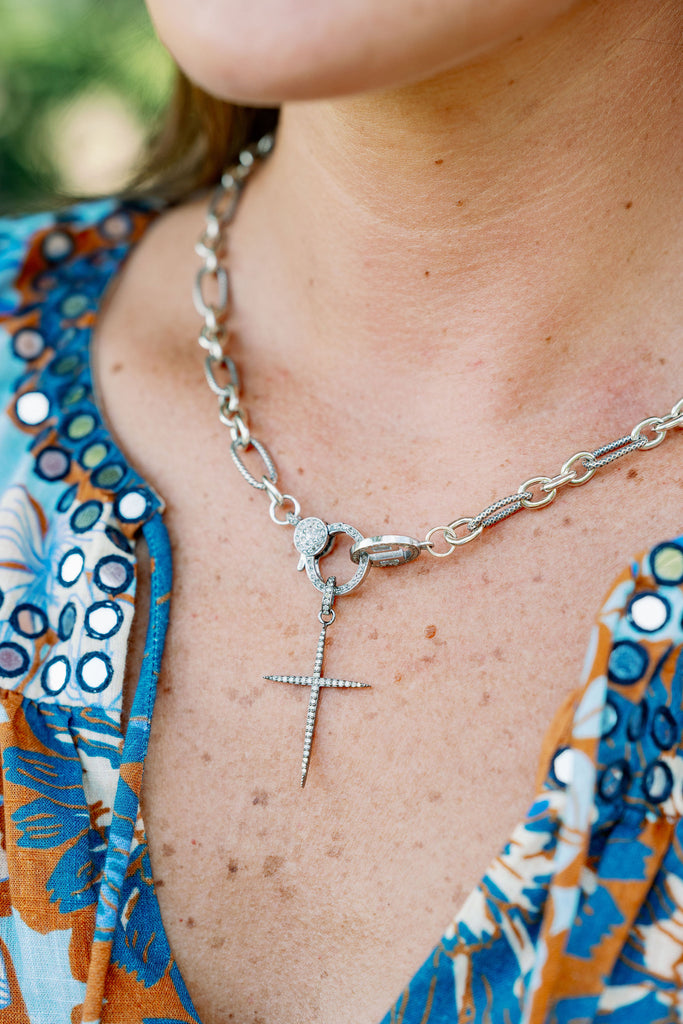 Croix en argent sterling oxydé de 35 mm x 24 mm (1,5 po) et pavé de diamants avec extrémités pointues.
