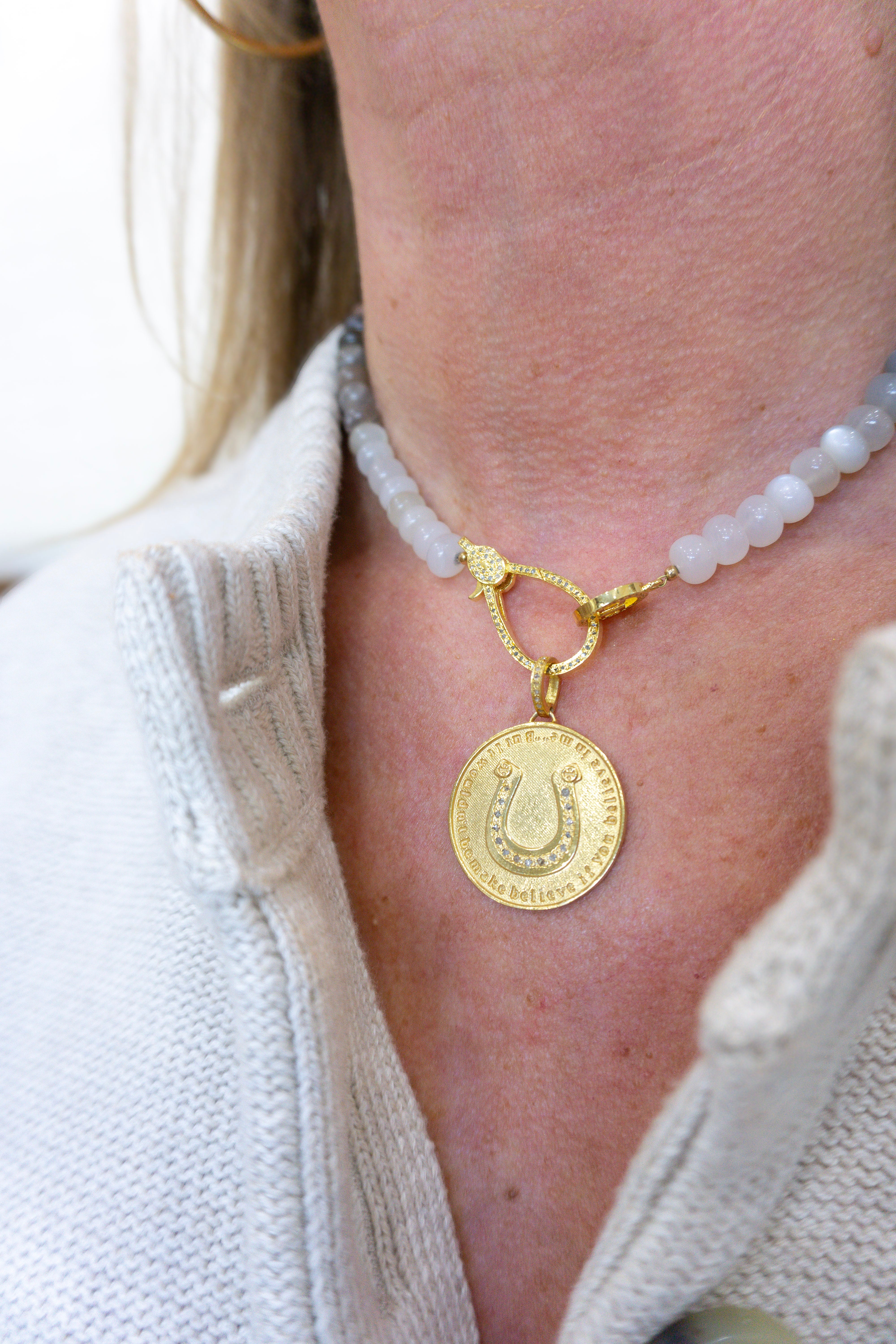 This one's straight from the heart. Created for Justice Mellencamp in honor of her sister, Teddi, this 30mm custom pendant carries a chorus line from the song "It's Only a Paper Moon" which is the song that their dad - none other than John Cougar Mellencamp - used to sing to them as children. Now, with Teddi showing cancer who's boss, the words mean more than ever: strength, sisterhood, and a soundtrack that never quits. Personalized. Powerful. And packed with love. This pendant is proof that music never fades, and neither does family.